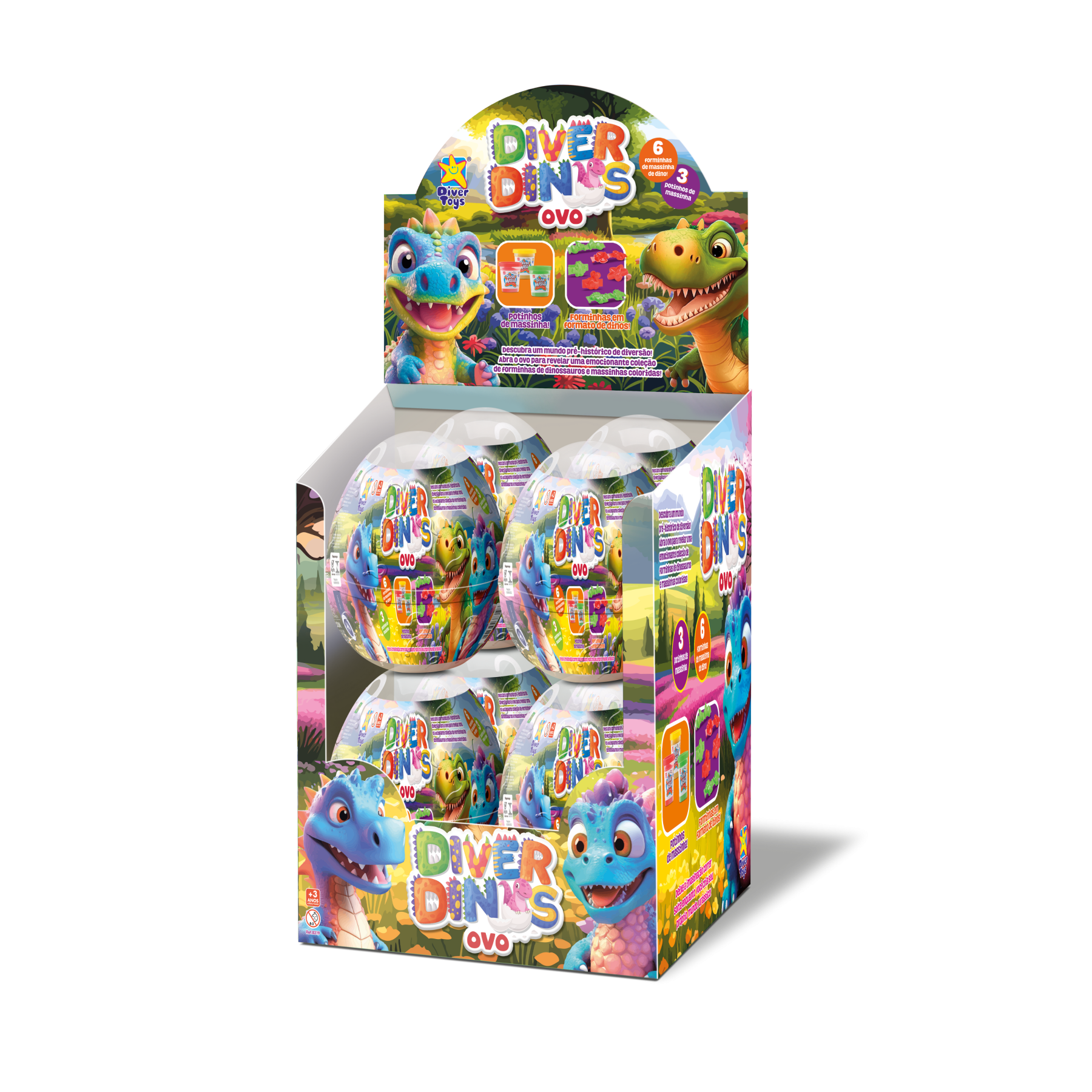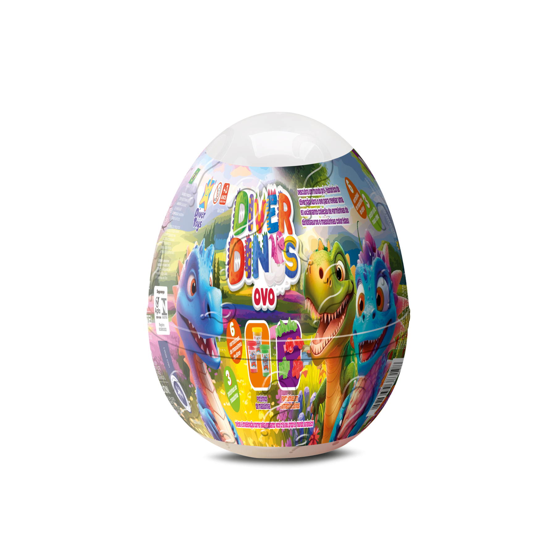 Descubra um mundo pré histórico de diversão! Abra o ovo para revelar uma emocionante coleção de forminhas de dinossauros e massinhas coloridas. - Additional Information