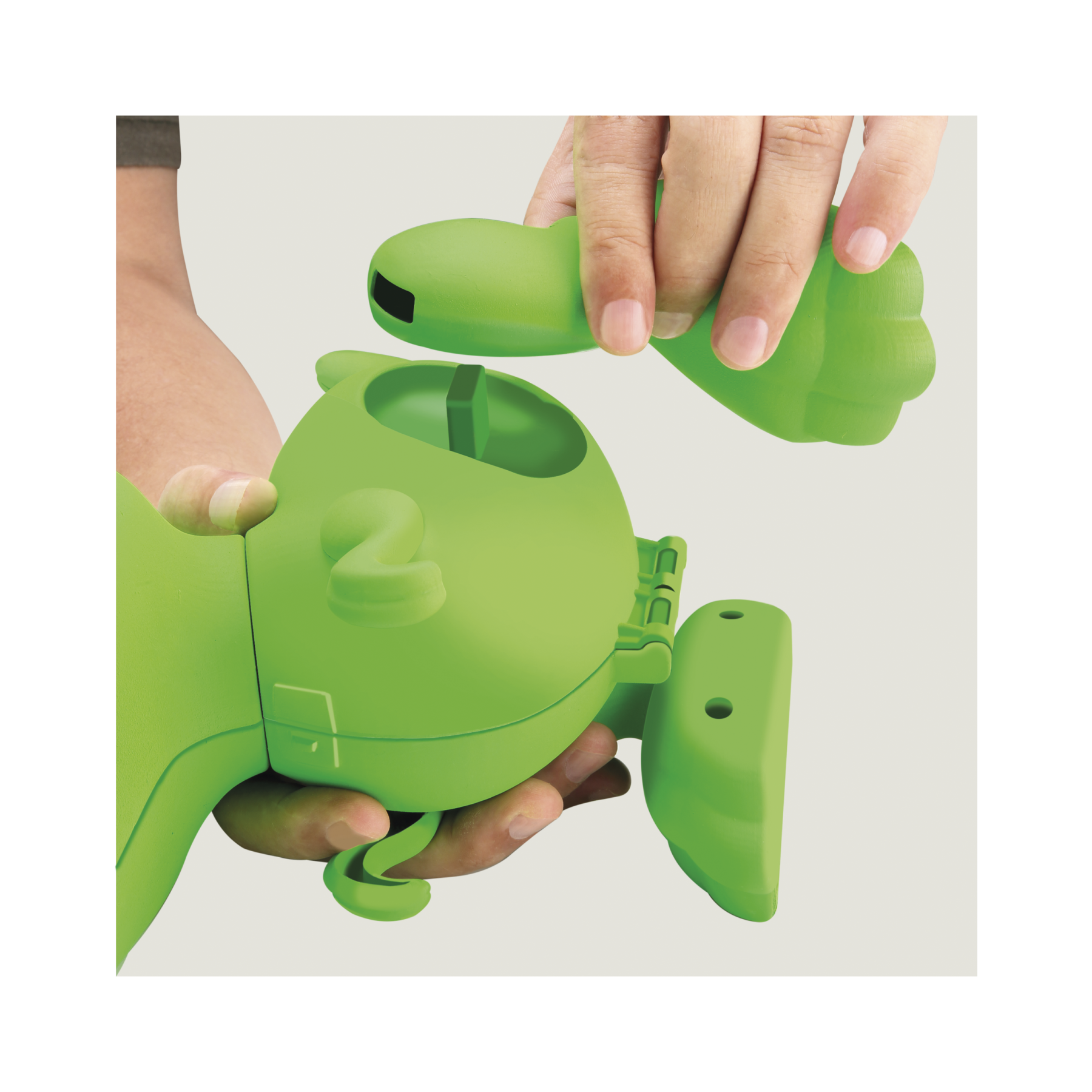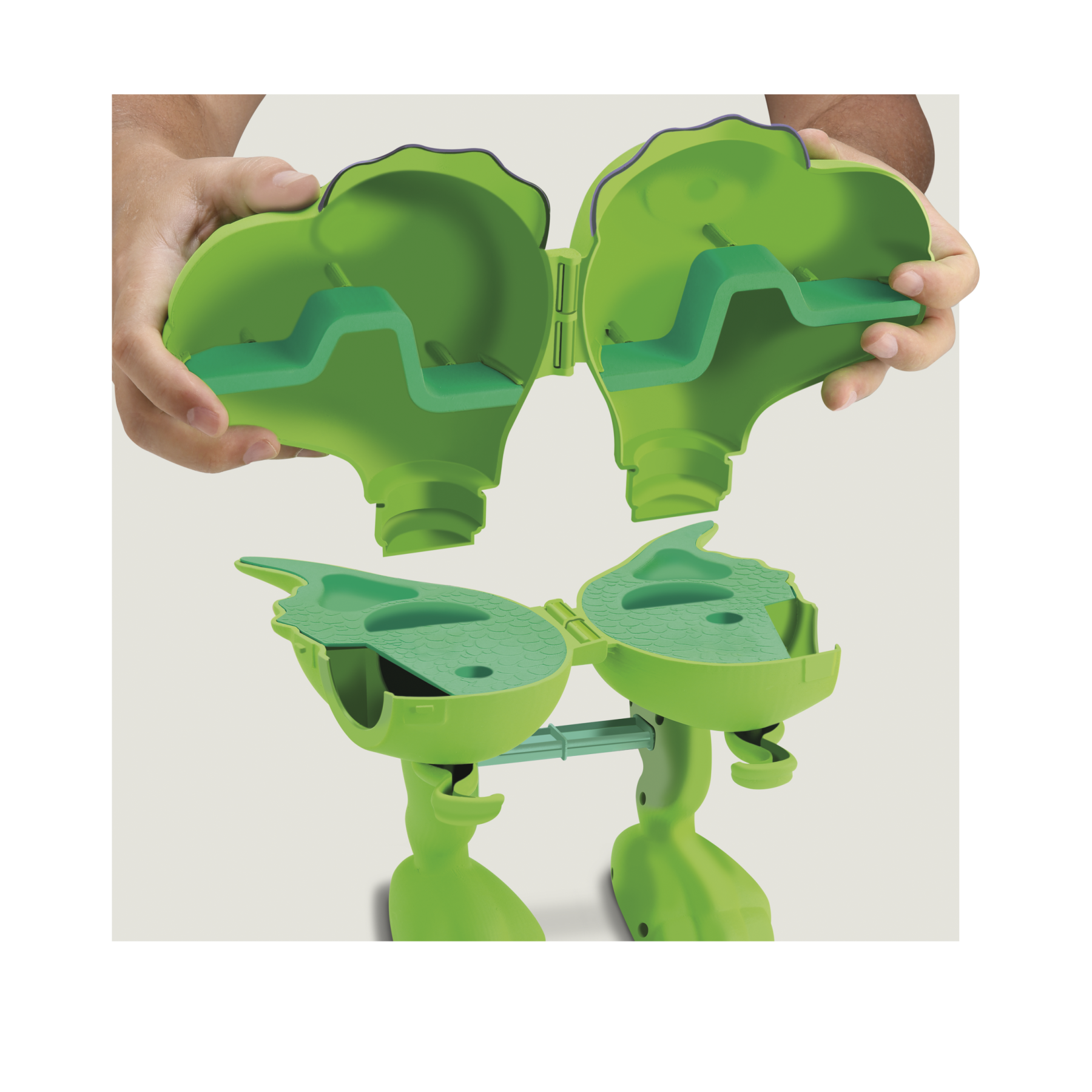 Um t-rex super descolado! Você pode brincar com ele fechado, e quando abrir, ele se transforma em uma bancada de atividades. Vem com forminhas de massinha para você fazer outros dinos, acessórios para modelar, massinhas de 3 cores e rodinhas nas patas para movimentá-lo!