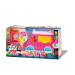 O teto e as laterais tem forminhas de comidinhas, acompanha bonequinha que pode sentar no carrinho! Vem com 2 potinhos de massinha com 3 cores!
