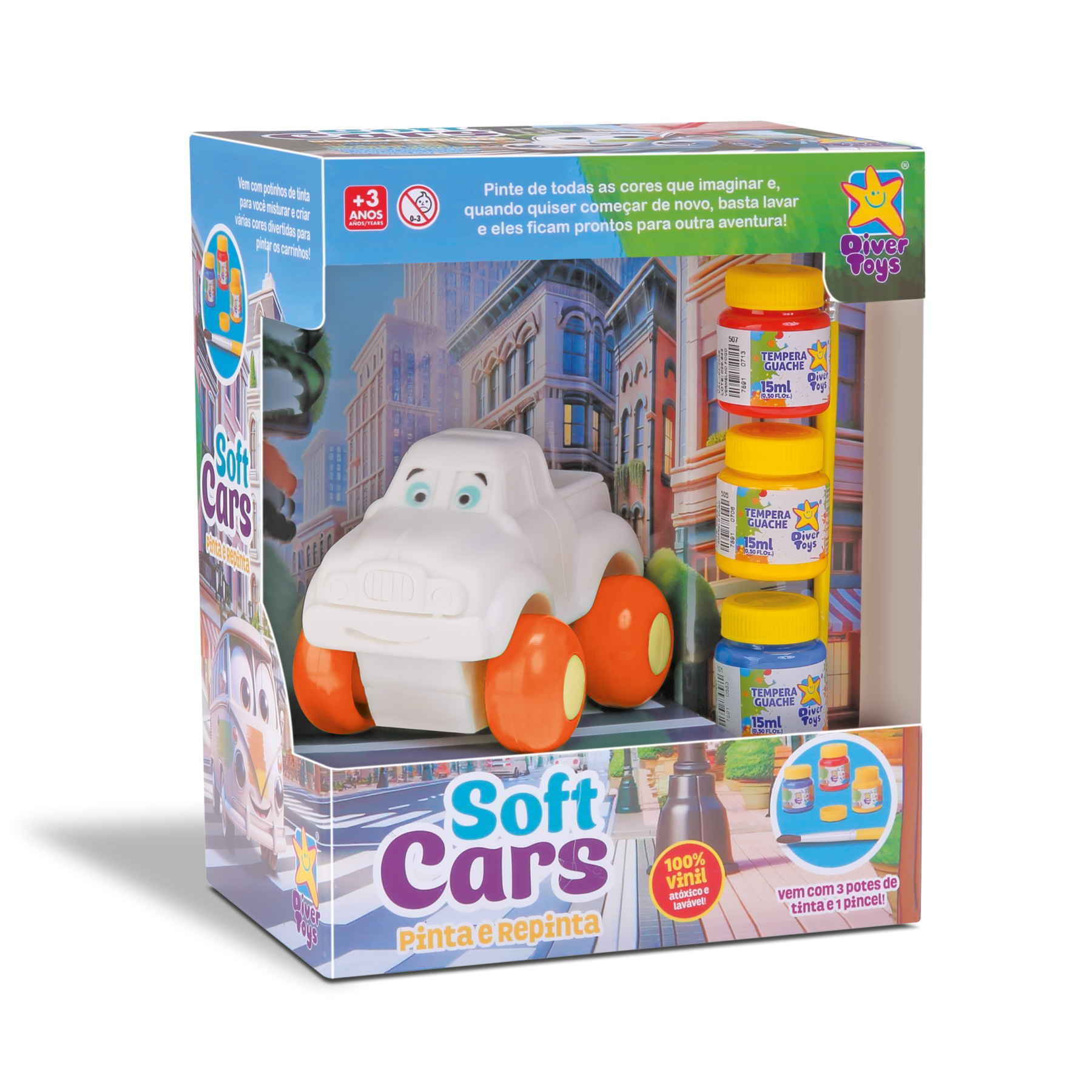 Vem com 3 potinhos de tintas e 1 pincel! Lave os carrinhos e pinte quantas vezes quiser!