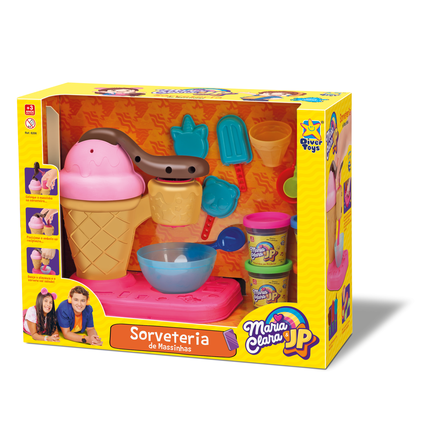 Você vai preparar vários sorvetes lúdicos! Vem com várias forminhas e massinhas!