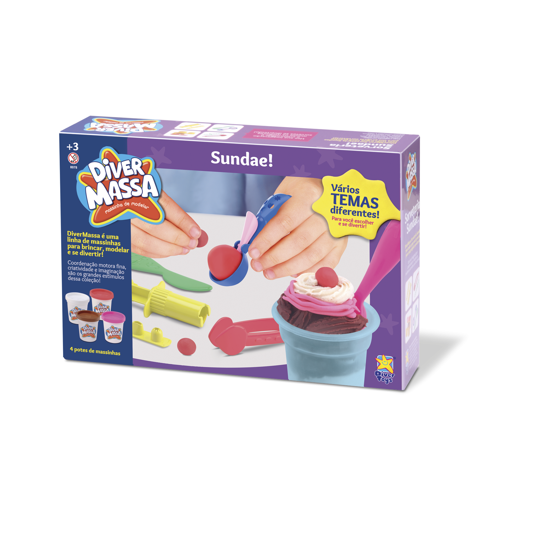 São 4 potes de massinhas e muitos acessórios para criar o seu próprio sundae lúdico e brincar muito! - Informação Adicional