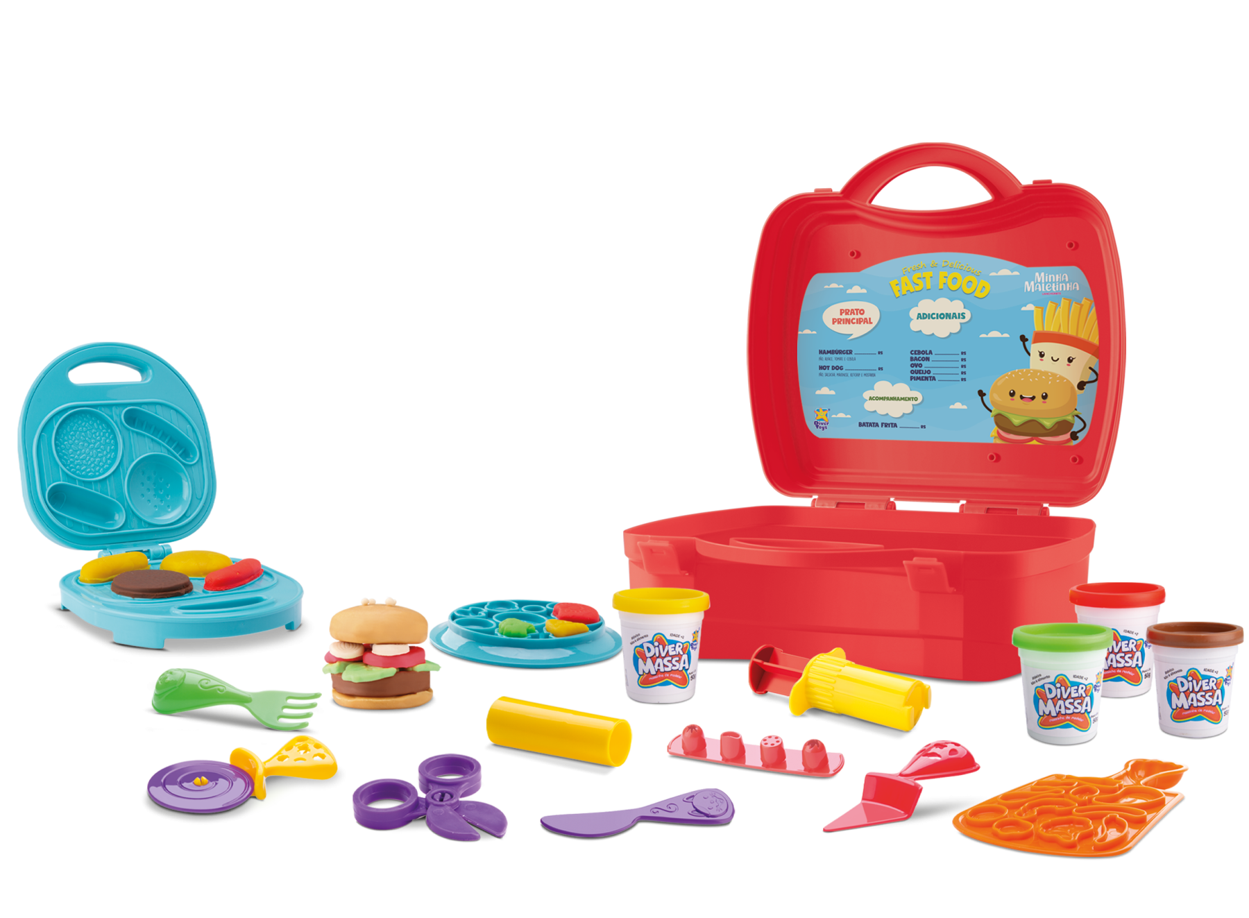 Faça lanches lúdicos! Vem com massinhas e muitos acessórios divertido para criar a sua própria lanchonete!