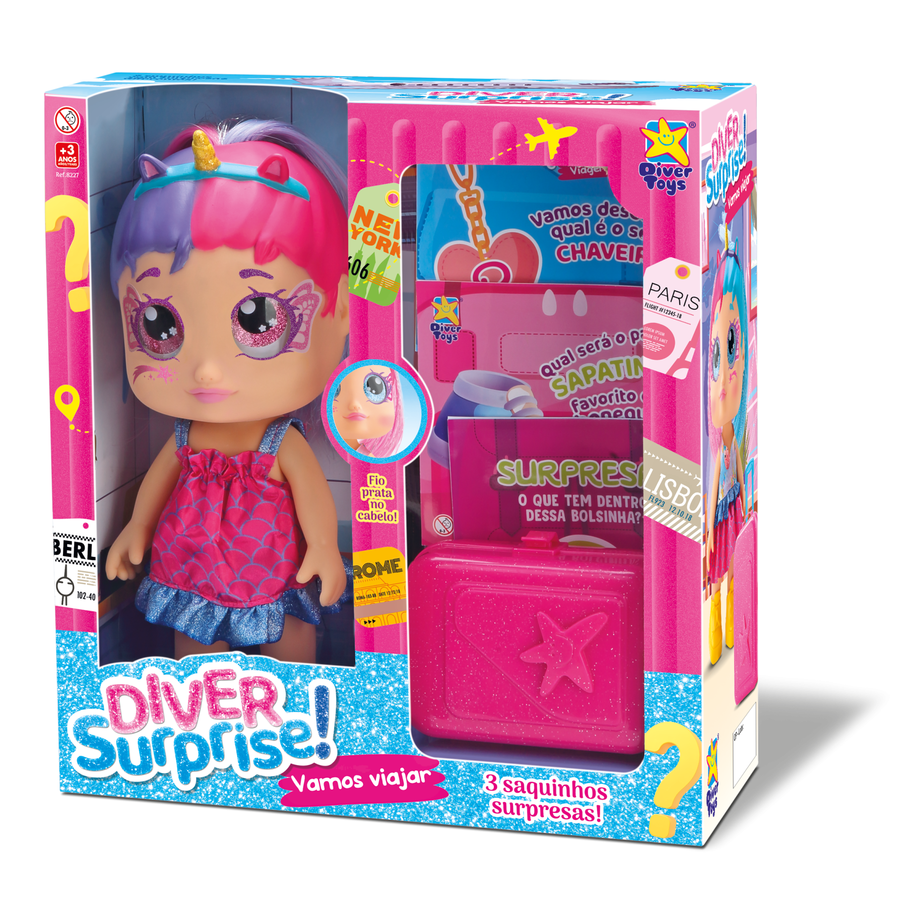 São duas versões de bonequinhas de viagem! Com looks modernos e saquinhos surpresas, para você deixar ela ainda mais linda! - Informação Adicional