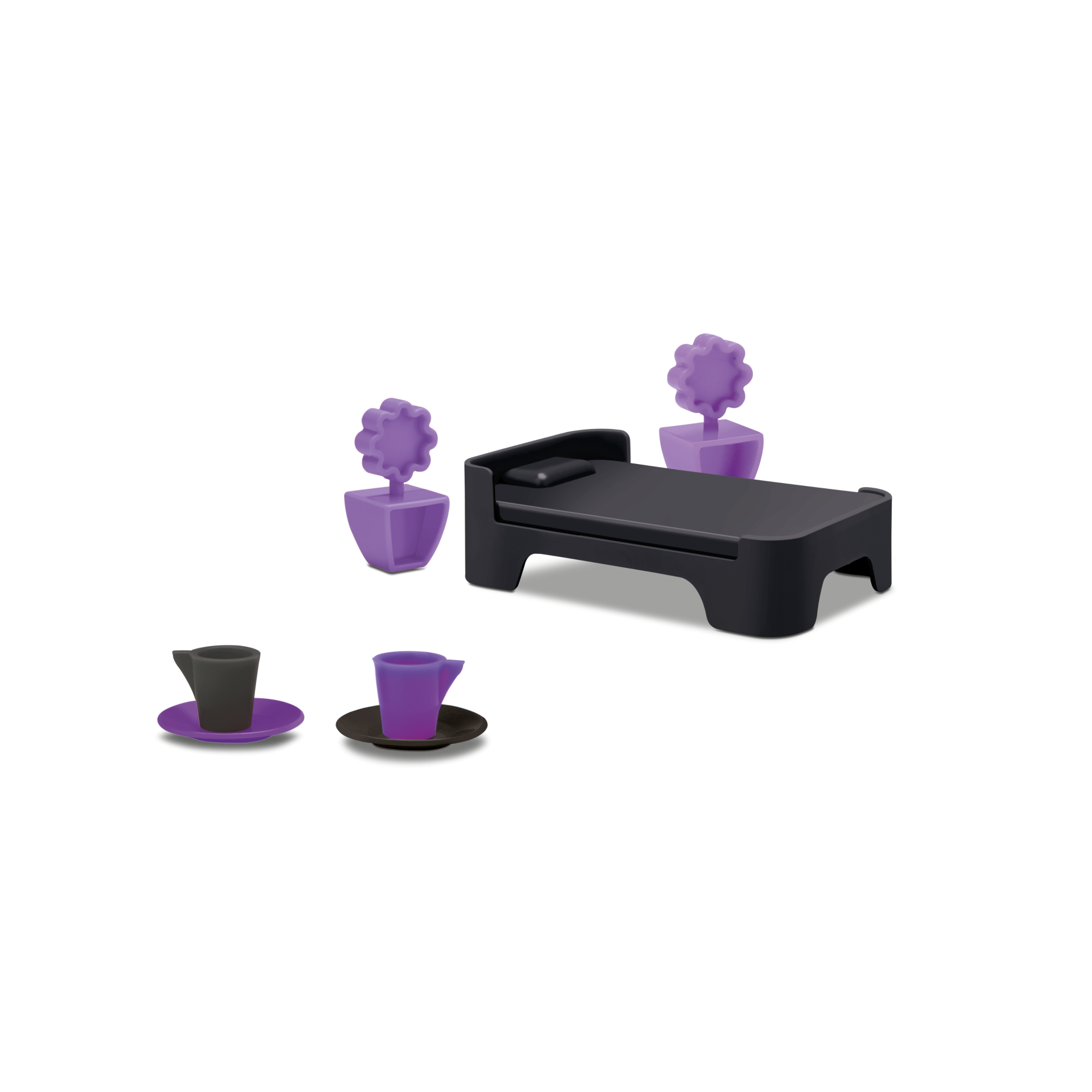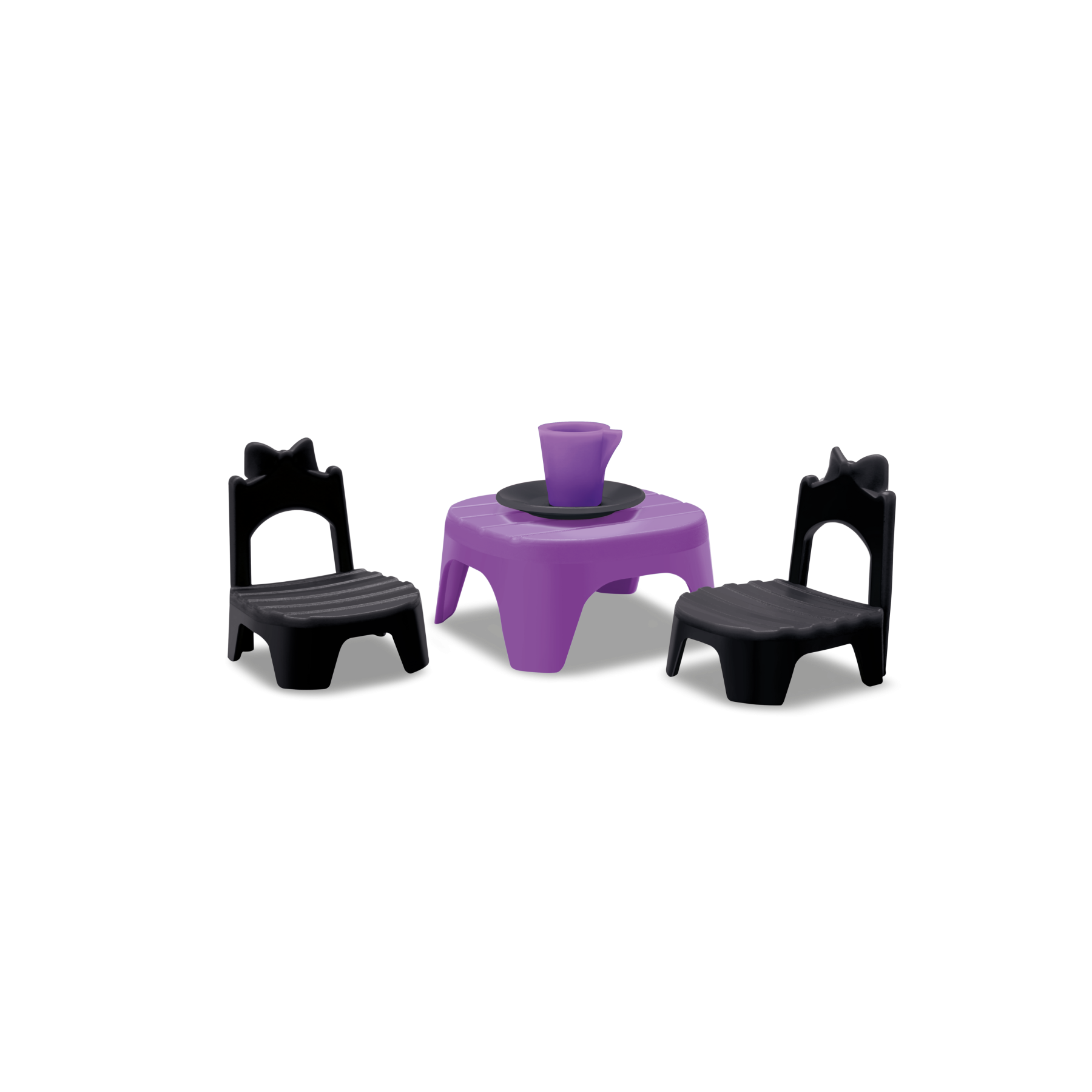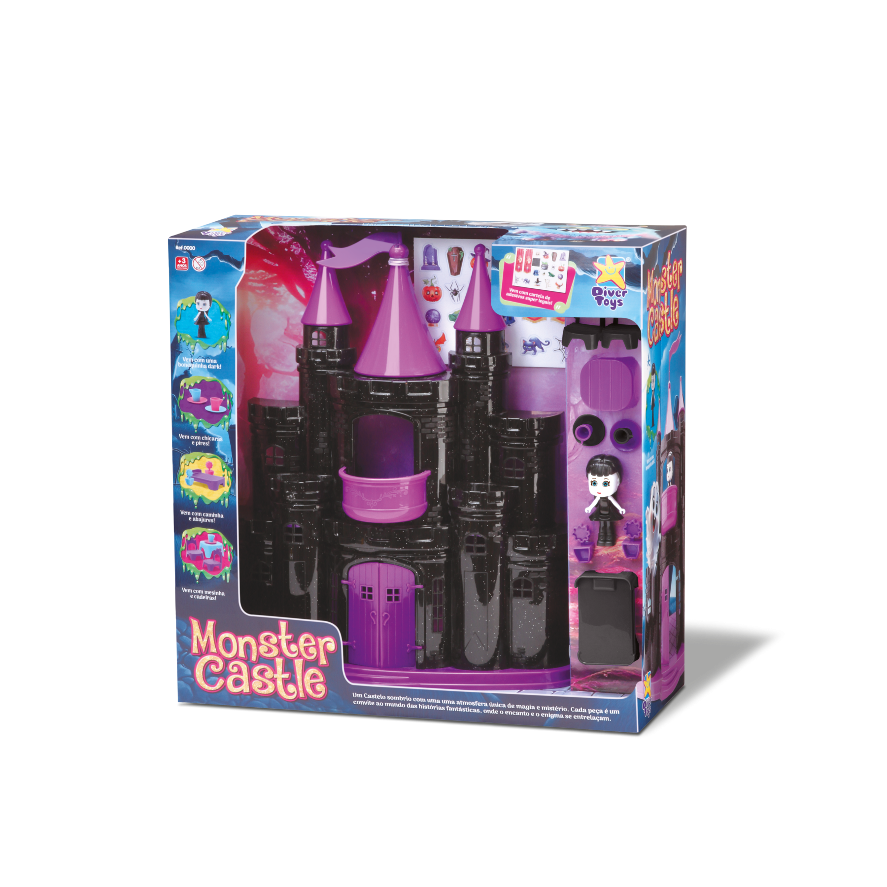 Um super castelo com adesivos para customização e uma boneca misteriosa que interage com os acessórios, são eles: mesinha, cadeiras, caminha, vaso de flor, xícaras e pires. - Informação Adicional