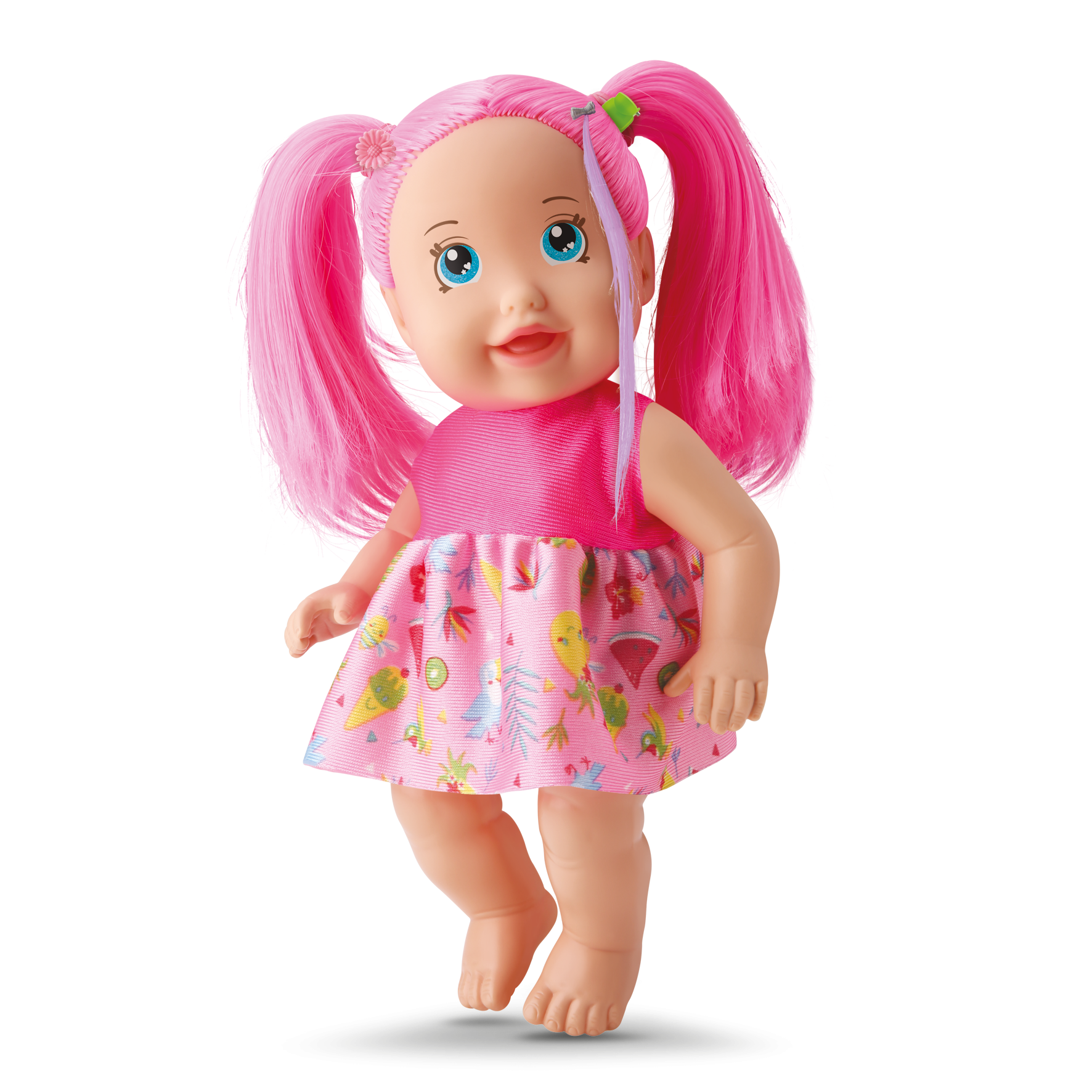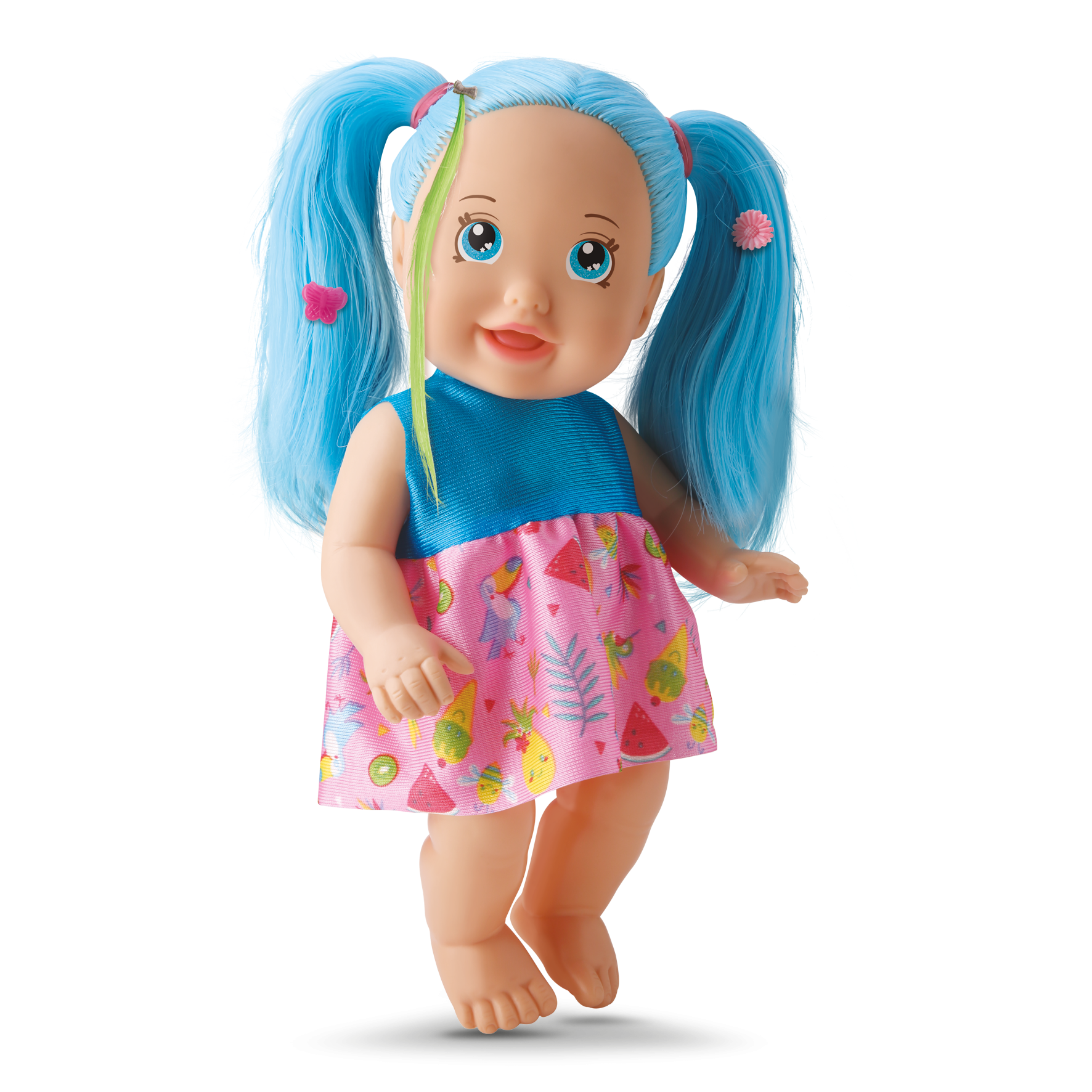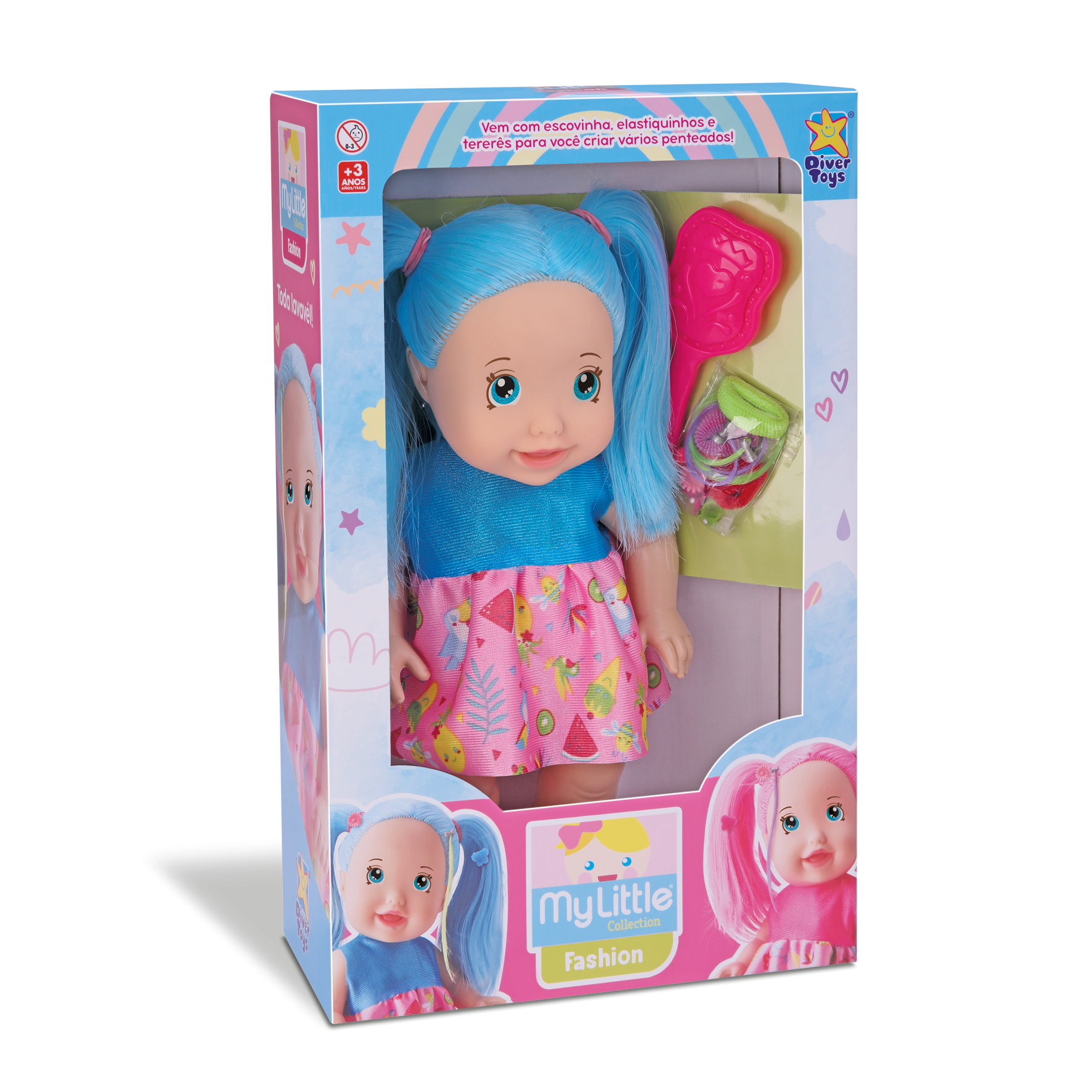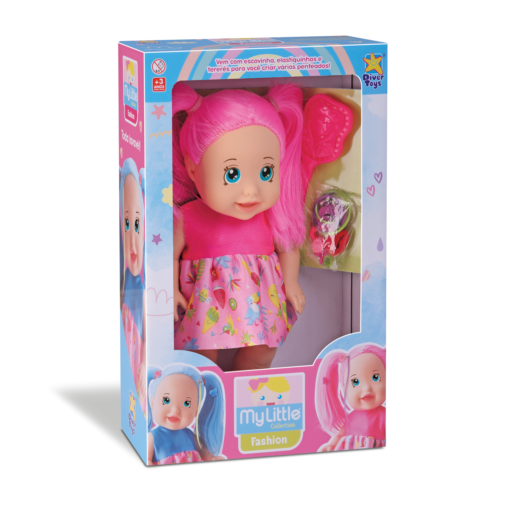 Uau!! Como elas são moderninhas! São duas cores de cabelo colorido para colecionar! Vem com escovinha, elastiquinhos e tererês para você criar vários penteados!
