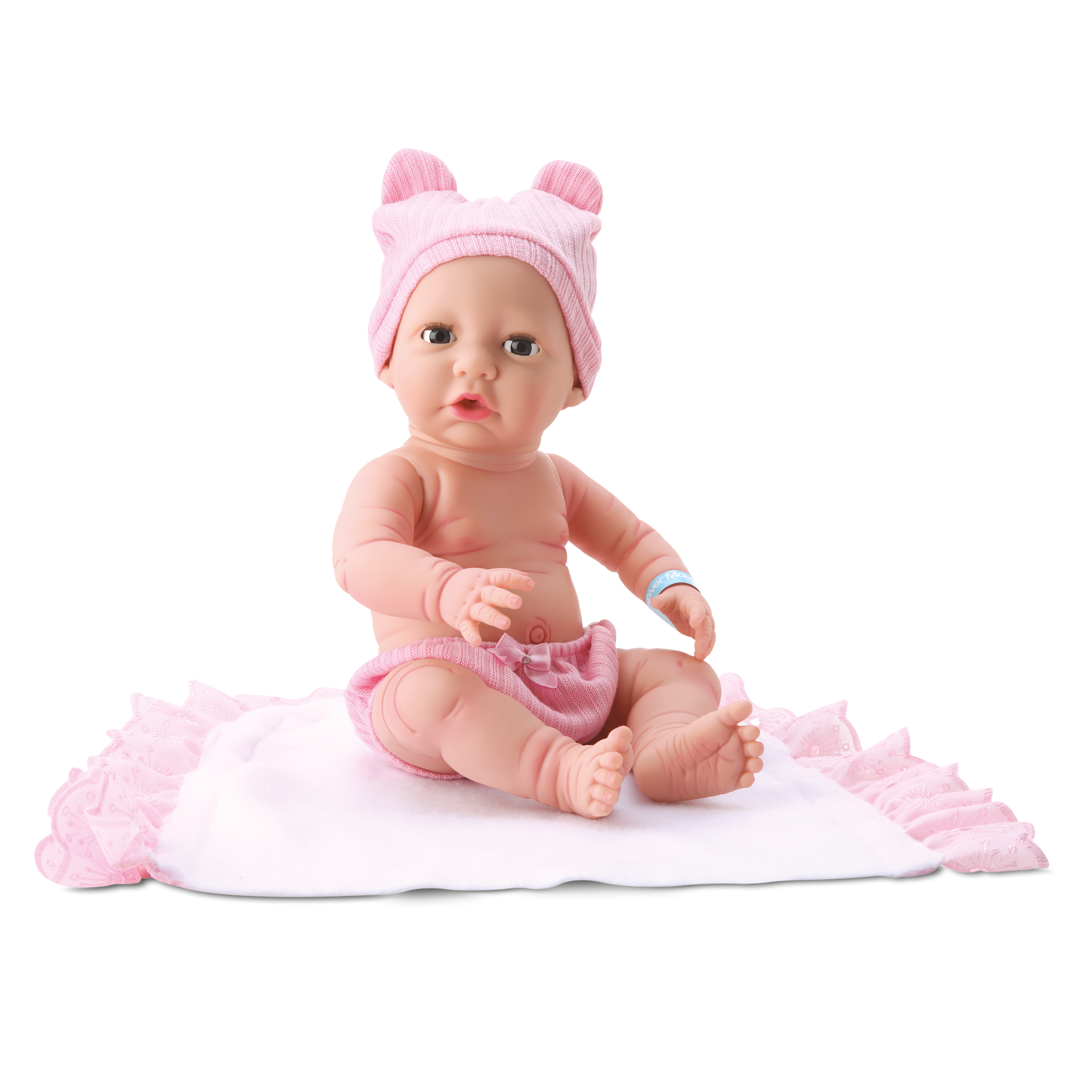 A bebê acabou de nascer! Detalhe rosado nas dobrinhas e unhas iguais de um bebê de verdade! Vem com todos os acessórios que você precisa pra cuidar dela. - Informação Adicional