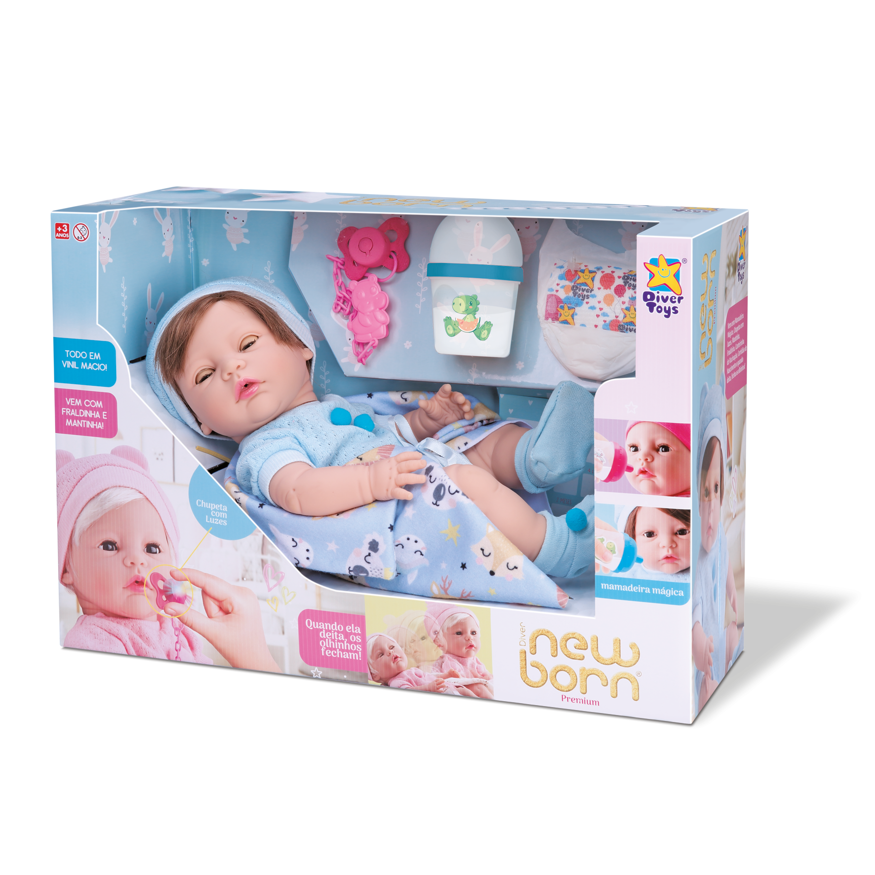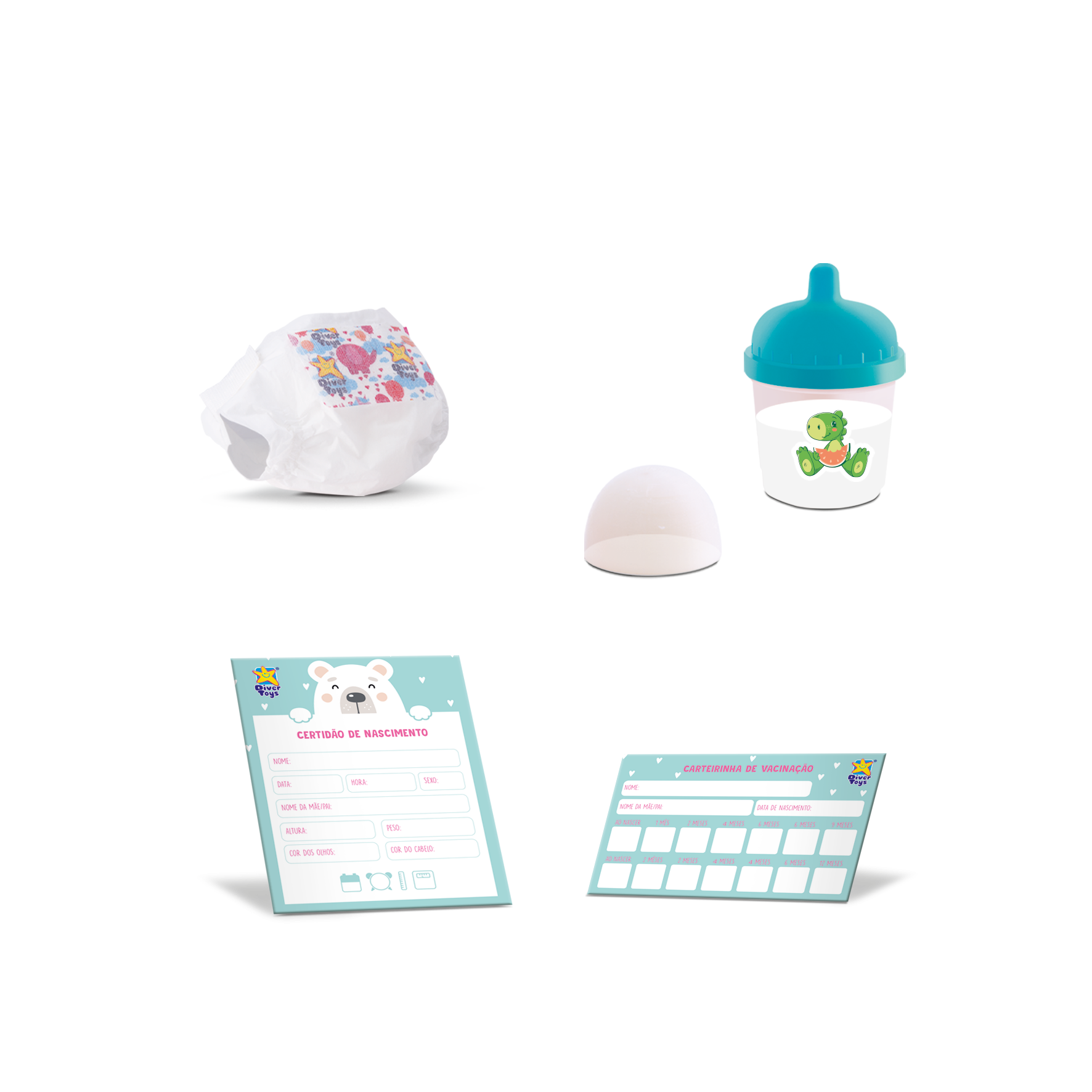 Ai, que amor! Vem com mamadeira mágica, chupeta com luzes, mantinha, fraldinha, carteirinha de vacinação, certidão de nascimento e quando deita, fecha os olhinhos! - Informação Adicional