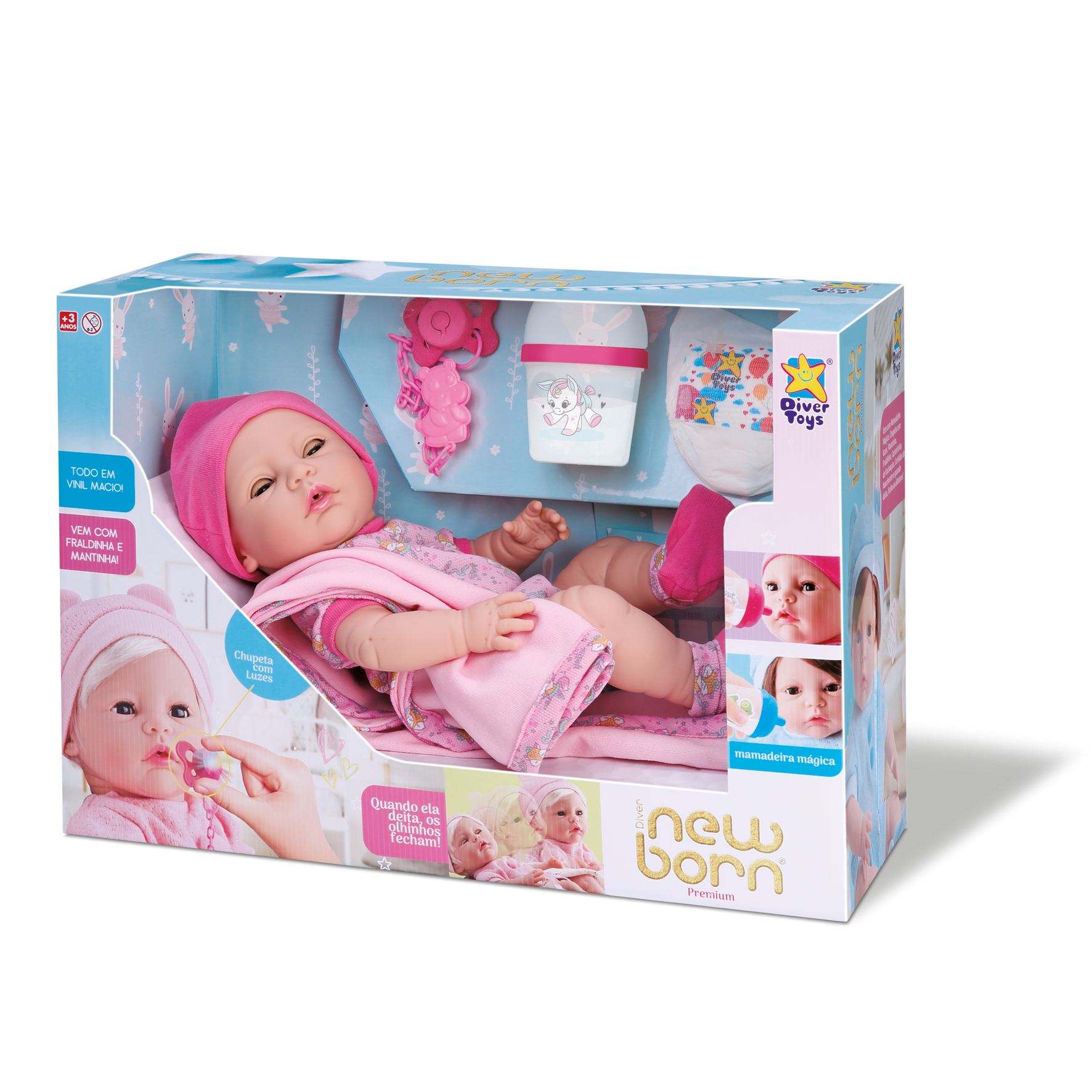 Vem com mamadeira mágica, chupeta com luzes, mantinha, fraldinha, carteirinha de vacinação, certidão de nascimento e quando deita, fecha os olhinhos! - Informação Adicional